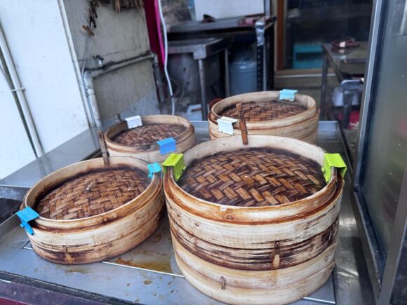おそらく蒸篭にかけてるクリップの色で、種類を違えてるのかな。
