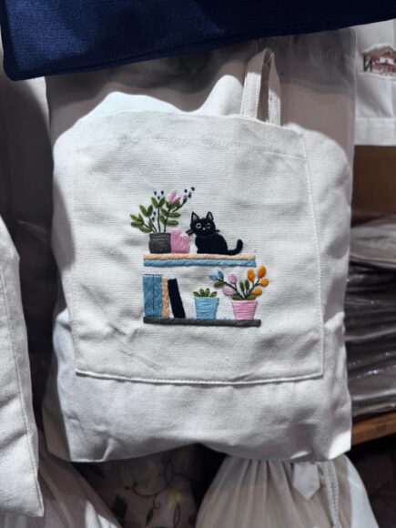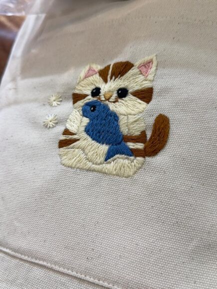 このお店の特徴は基本生地が無地で、白とかきなりがベース。色味は刺繍の糸の色のみ。だからそんなにバーっとした華やかさはありません。どちらかと言うと地味な印象。