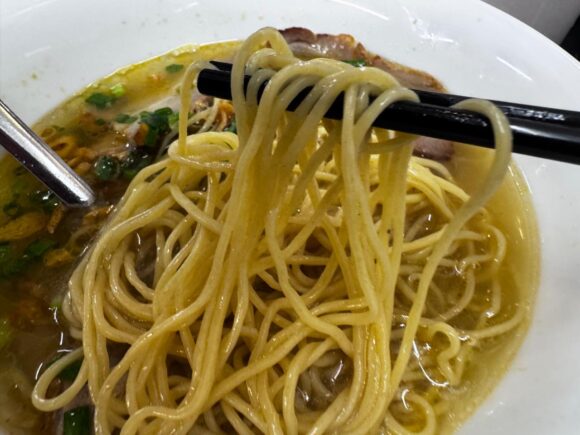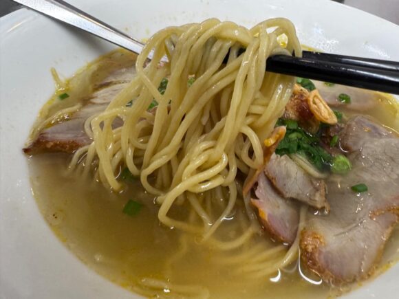 こういう中華麺の場合、言葉を選ばずに言うと、ゴムのような、私はよくウォリュウォリュ麺って言ってますが、それも美味しい。でもここのは違う。