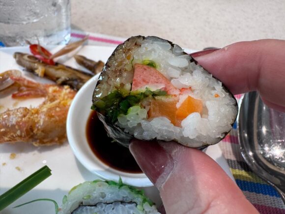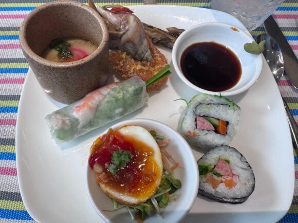 オードブルエリアには定番の生春巻きもありますが、日本のお寿司もあったりして、日本人にはフレンドリーさも感じます。