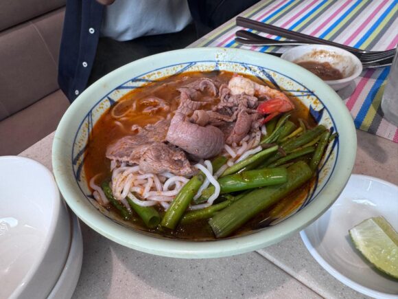 この日は、Bun Thai Lan。タイ風のBun(という米麺)料理。トムヤムクンみたいなスープが使われてるんですよね。