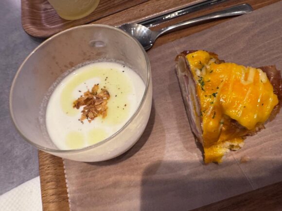 ビシソワーズとハムチーズクロワッサン的なものも、暑い時期でも良い組み合わせだなと思って食べたのですが、、パンは店内飲食なのに温められていないし、ビシソワーズは…
