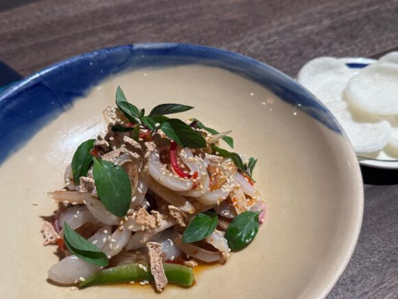こんなの南国じゃないと食べられませんよね。そしてこのハーブの散らし方。ただ混ぜただけじゃない。仕上げに丁寧に配置してるのがわかる。美しいお仕事。
