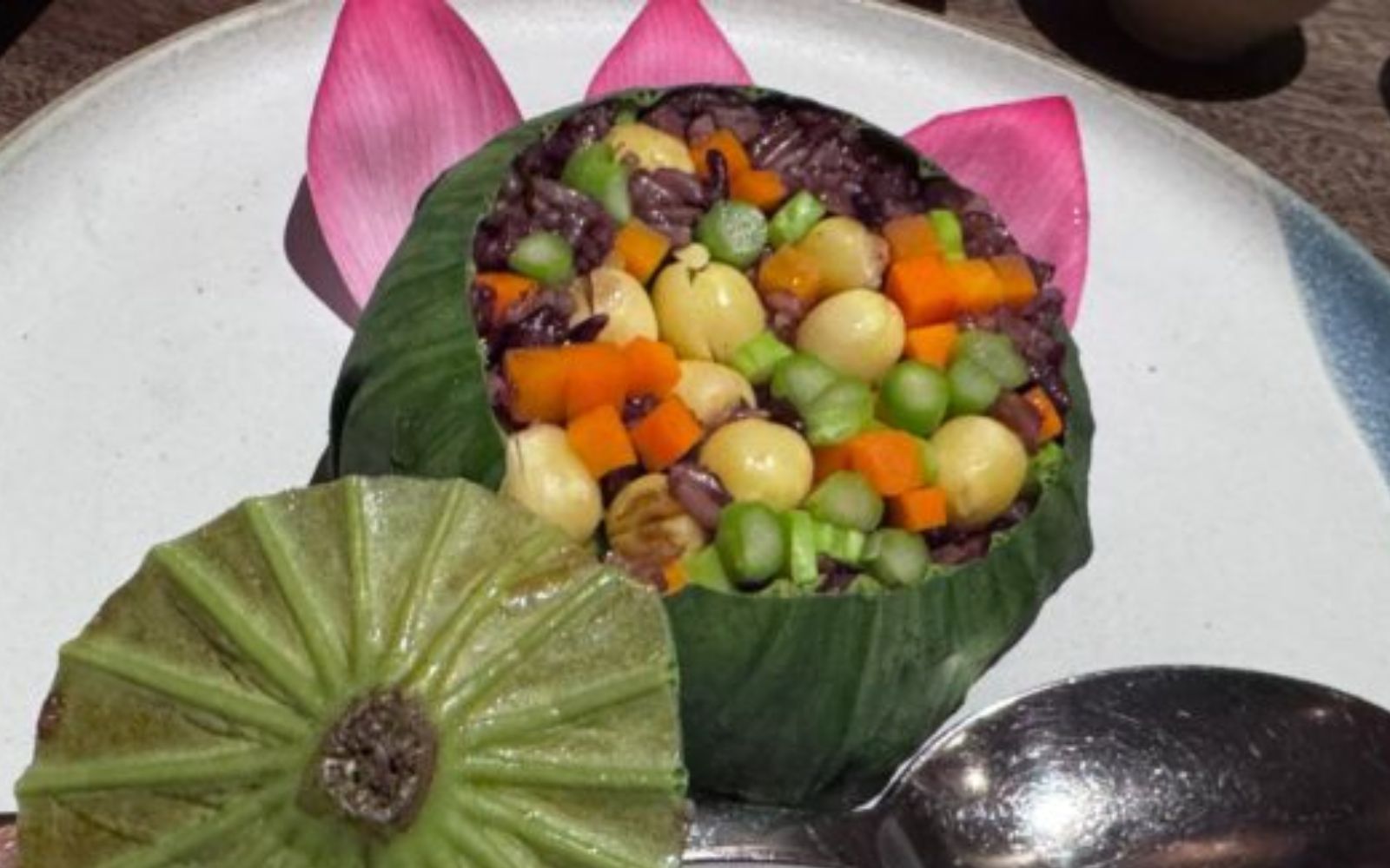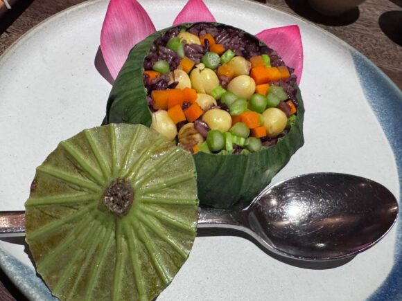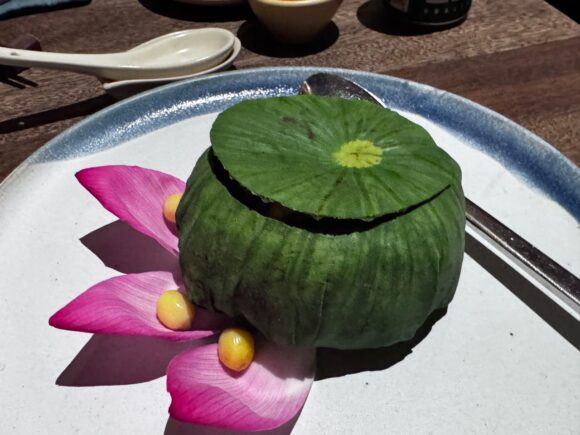 蓮の葉で包み込んだ、蓮の実入りのご飯。とてもベトナムらしい上に、ほんっとうに美味しいです、これ。