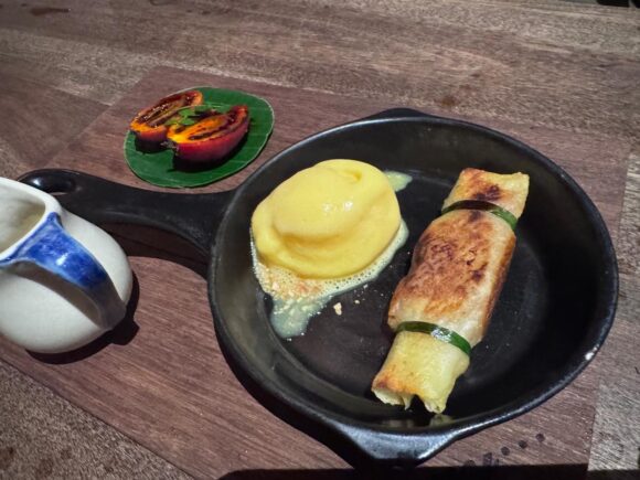 食べたかったスイーツが売り切れだったので今回はこれを頼んだのですが、春巻きみたいなものの中はバナナ。熱々の、バナナ。美味しいやつ。