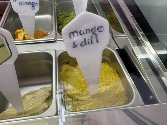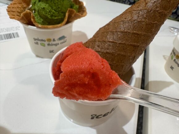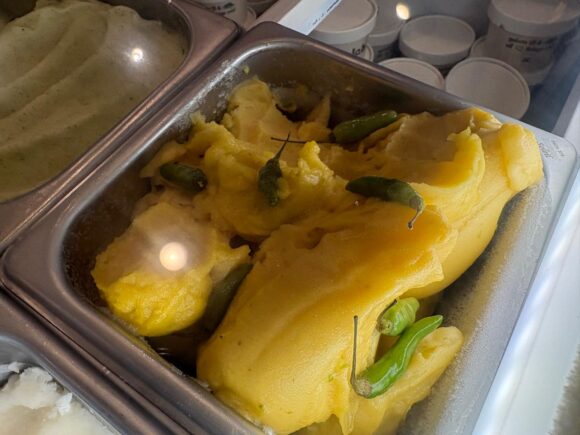 これとかめっちゃ目を引いたから食べさせてもらったの。ベースはマンゴー。でもディスプレイには青唐辛子。