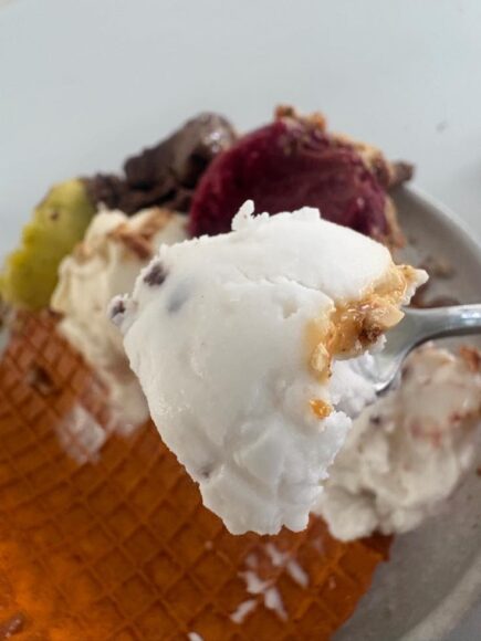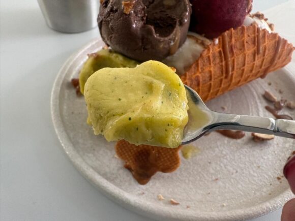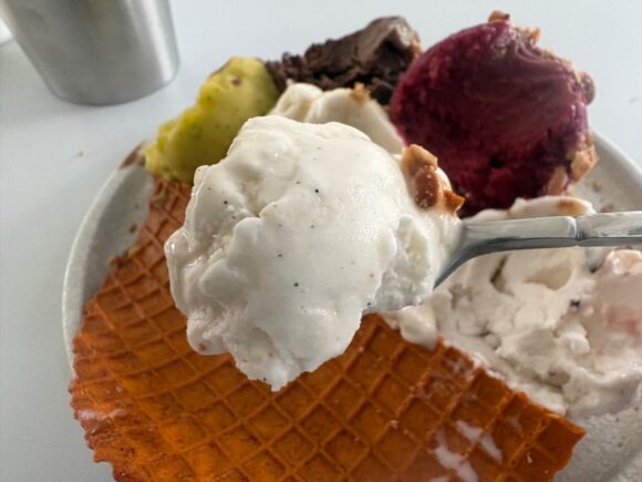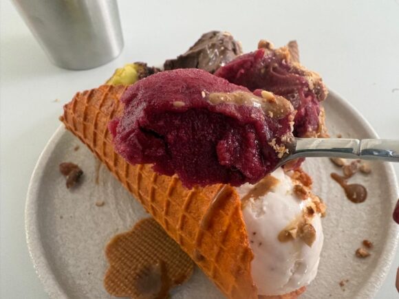 普通アイス、2スクープも食べれば口の中が甘くなるし、一旦リセットしたくなるじゃないですか。それが全くない。