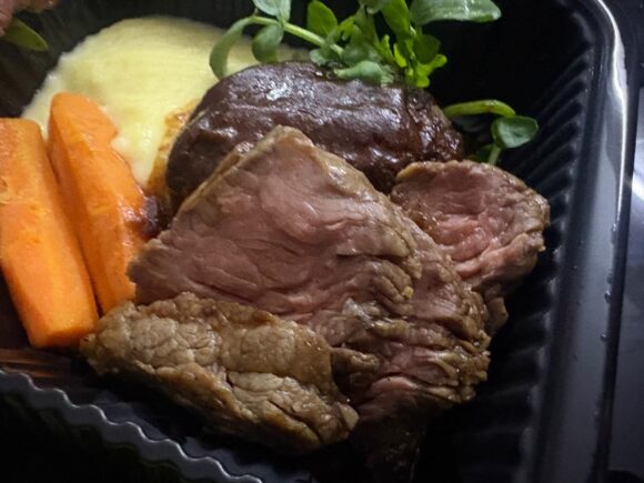 でもここの、単品のステーキをデリバリーしたことあるけど、そこまで考えて調理してくれるのよねえ。