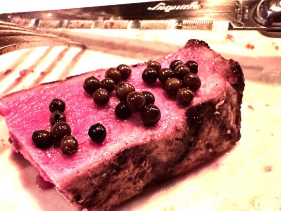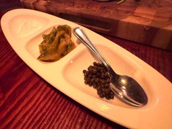 ステーキにはし美味しい上質なお塩とかワサビとかがついてくるのですが、この粒胡椒の塩漬け?も大変美味しい。