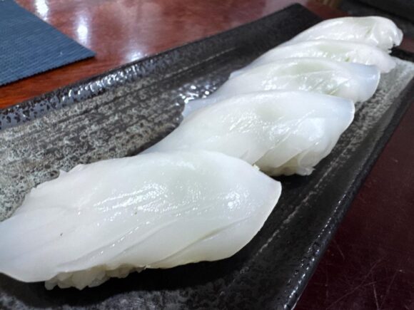 イカのお寿司は5貫セットのやつを頼みました。ベトナムのイカには、結構信頼置いてるとこあるw