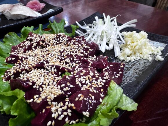 とても角が立っていてシャッキリとした歯切れの良いレバ刺し。