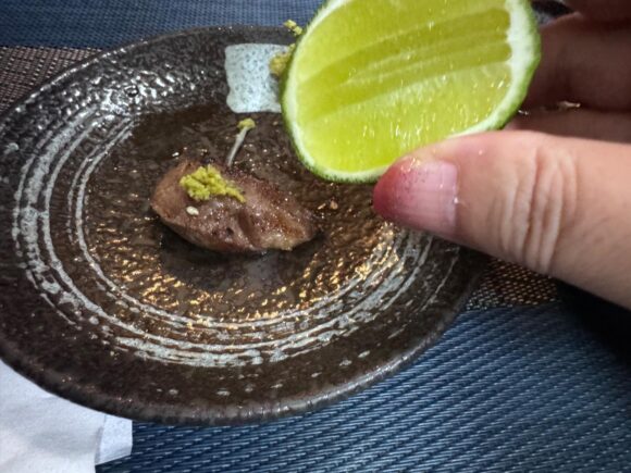 ライム絞っても美味しいし、お寿司に乗ってて余ったワサビを取り置いといてちょっと添えたのも美味しかった。