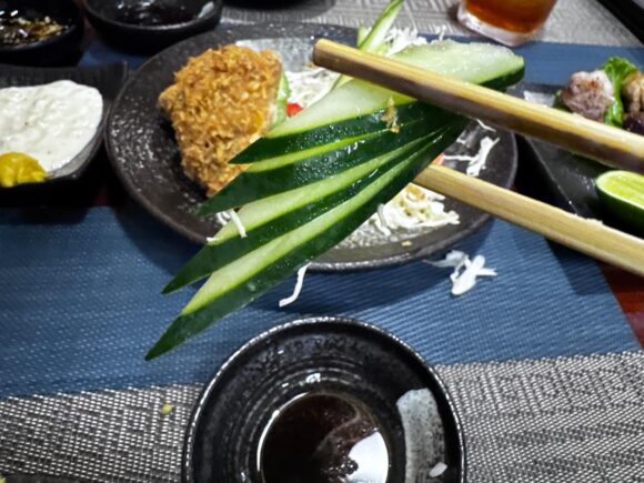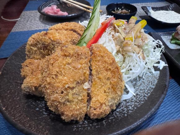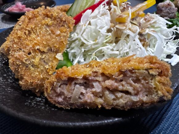 そして揚げ物も頼んでみたいってことで、天ぷらじゃなくてメンチカツを頼んだんですよ。メンチカツって、結構「日本料理」じゃないです?