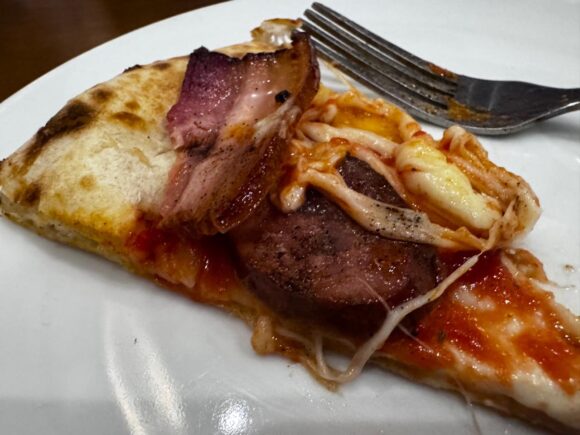 ピザは持ち帰ってリヒートして食べても美味しい、またはリヒートの仕方によっては、その方が好みになったりするからいいよねー。レビューが捗る。