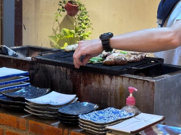程よく内側をマスキングしながら、焼き方さんが目を配れる範囲をグッと広くしてる。