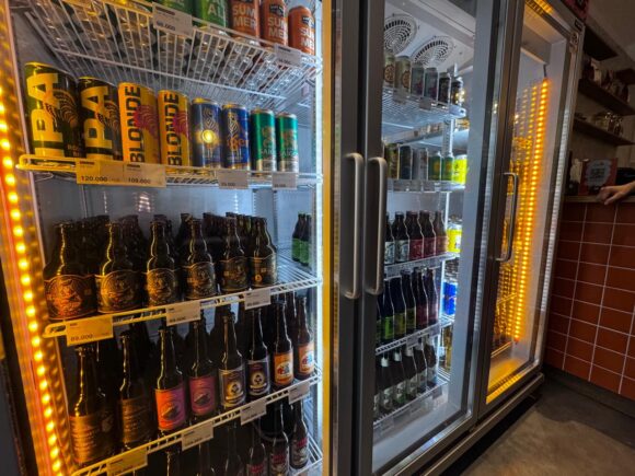 特徴的なのは、入ってすぐ左手に大きな冷蔵庫があって、そこにたくさんのクラフトビールが並べられてること!