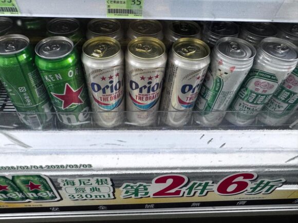 ちなみにドリンクは、コンビニで買いました。構内にファミマとかいっぱいあるので。なんか知らんが、台湾にオリオンビールあるのな。