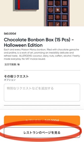 こんな感じで「レストランのページを見る」と言うタブがあるので、そこをタップすると、通常取り扱っている商品を網羅したページに行きます。