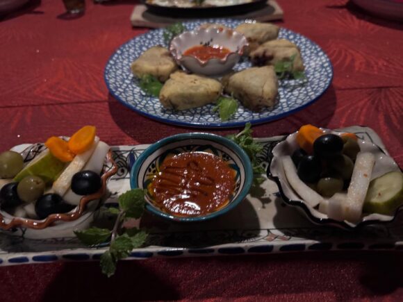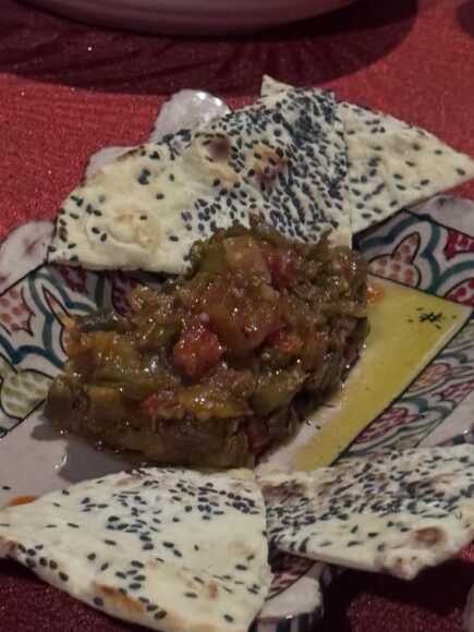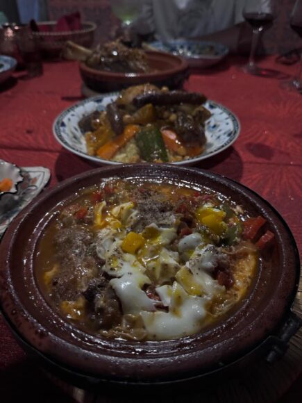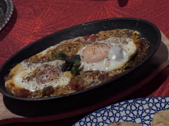 これは、CHACHOUKA、シャクシュカって呼ばれるものかな。赤パプリカをよく炒めたものにトマトは。。。入ってたかな。
