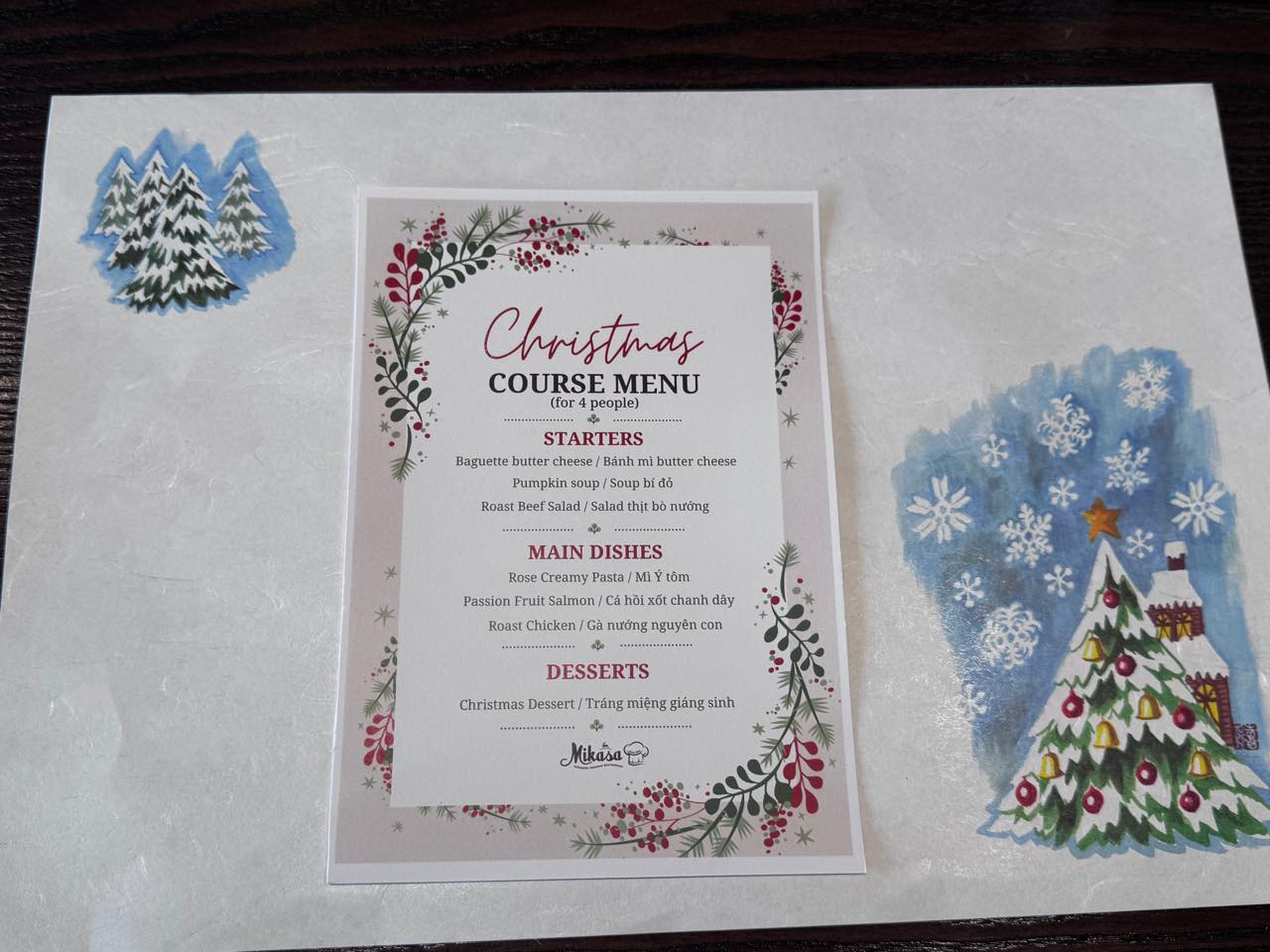 こんなにかわいいランチョンマットとメニューまで用意してくれて、気分はすっかりクリスマスパーティー!