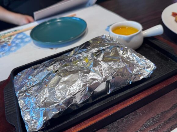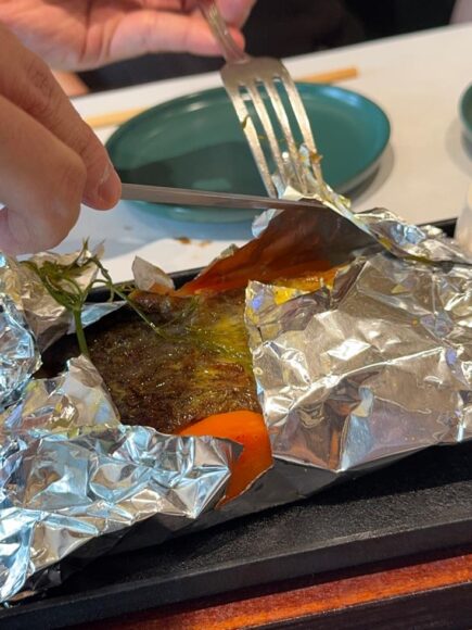 ホイルをカットして堤を開くと、フワーッと広がるサーモンの香り!美味しそう!!