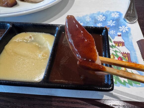 それ自体がおいしいので、すっかりソースの存在を忘れがちですが、ソースも実は3種類あり、ペッパーソースにガーリッククリームソース、そして三笠自慢のデミグラス。