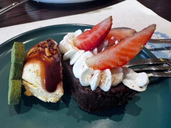 デザートはショコラテリーヌに、アイスクリーム。上の分量が2人分。