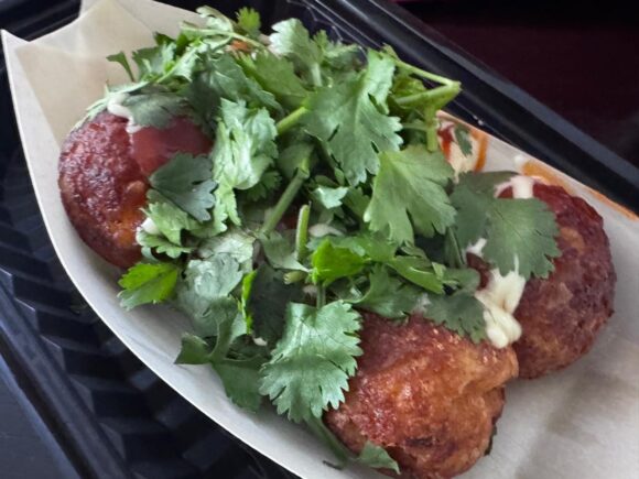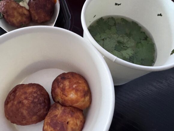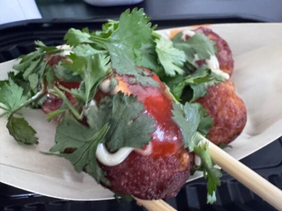 で、こちら、青のりの代わりにパクチーをたくさん纏わせて食べましたらば。。。