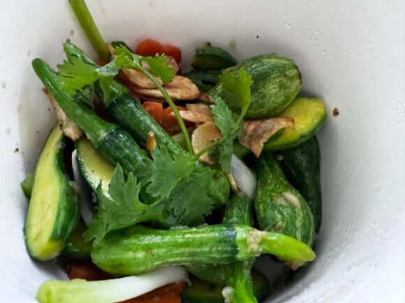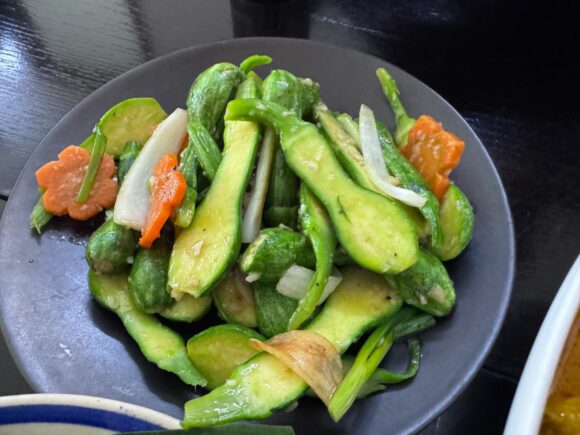 この料理もあまり日本じゃ見ないんじゃないかな。味わい的には受け入れられやすいシンプルな味わいだけど、素材として、この段階のかぼちゃ、あんまり食べないもんね。