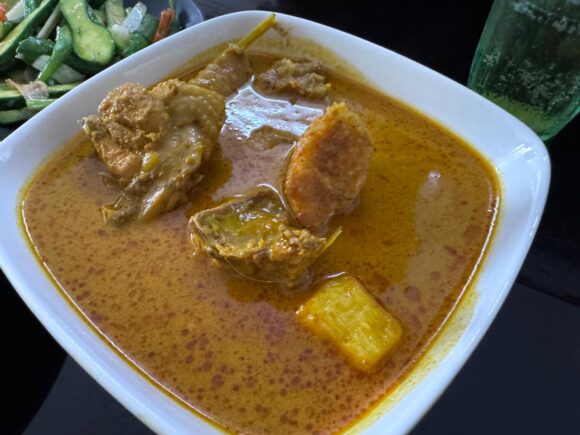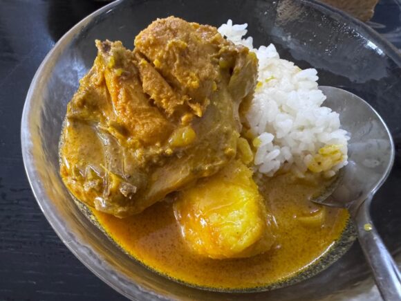 しかし濃すぎずオイリーすぎず、食べ飽きも来ない。甘いカレーにありがちな、芋がさつまいも、っていうのもなくてキャッサバ。