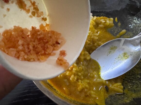 もちろんすでに完成してるカレーなので、味が足りないわけじゃない。穏やかめではあるから、数粒散らして、コントラストを楽しむって感じかな。