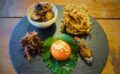 牡蠣やお肉がない分、見目には地味に感じるかもしれない。でも、野菜が盛られた中央を見てほしい。こいつは…カニで作ったなにか。なんかふわふわしたもの。製法はまだ聞いていない。