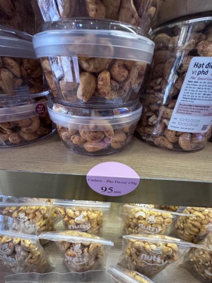 フレーバーを施したナッツたちなのですが、キャラメル味とか甘いものもあれば、なんと、Pho味のものも!(笑)