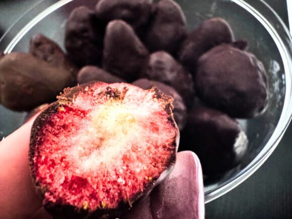フリーズドライのイチゴのチョコレートコーティング。珍しくないですよね。だから私、来店数回はスルーしてたんです。