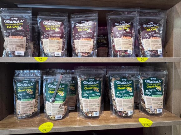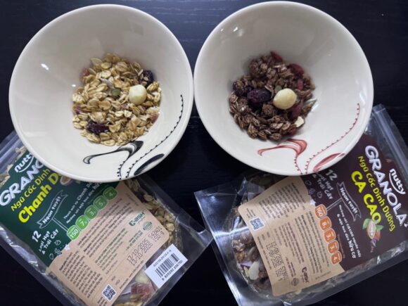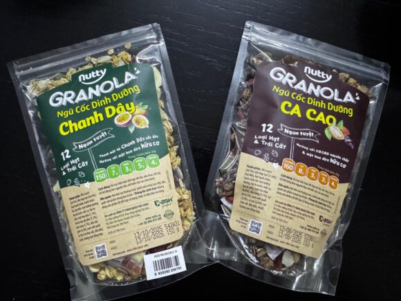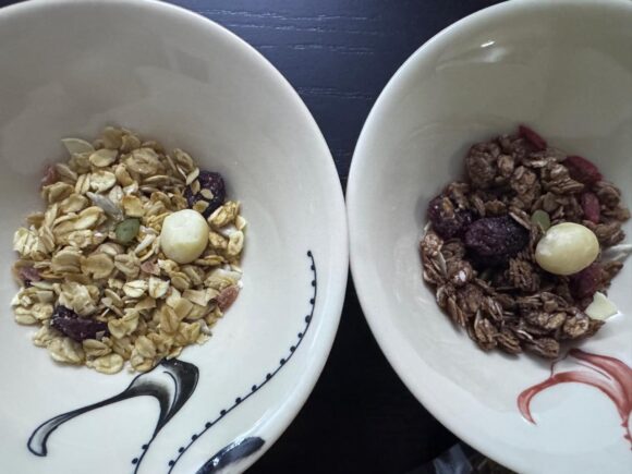 フレーバーが2種類あって、ちょっとだけ値段違うが、結構買いやすい価格。市場に出回るグラノラの最安値、とはいいませんが、「高っ!」となることもなくて買いやすい。