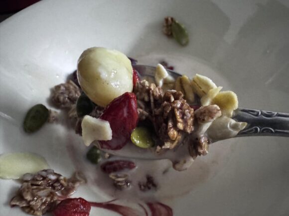 今回はオートミルクをかけていただいたのですが、食べやすいし、いろんな風味と食感があって非常に楽しい。