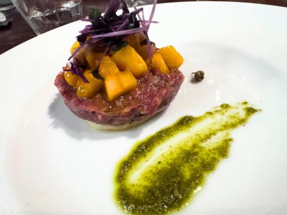 馬肉とマンゴーのタルタル キタアカリの焼きニョッキのジェノベーゼ