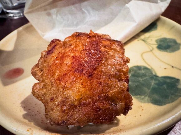 聞いたところによると、鶏がらで撮った出汁にチキンを漬け込むと言うダブルチキン仕様。シェリーの香りも、とても香ばしく生きていて、唐揚げの概念が全然変わった。