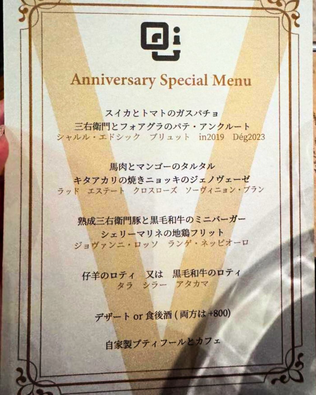 Spent: 5周年記念ディナー+ペアリング 20,000円 / person