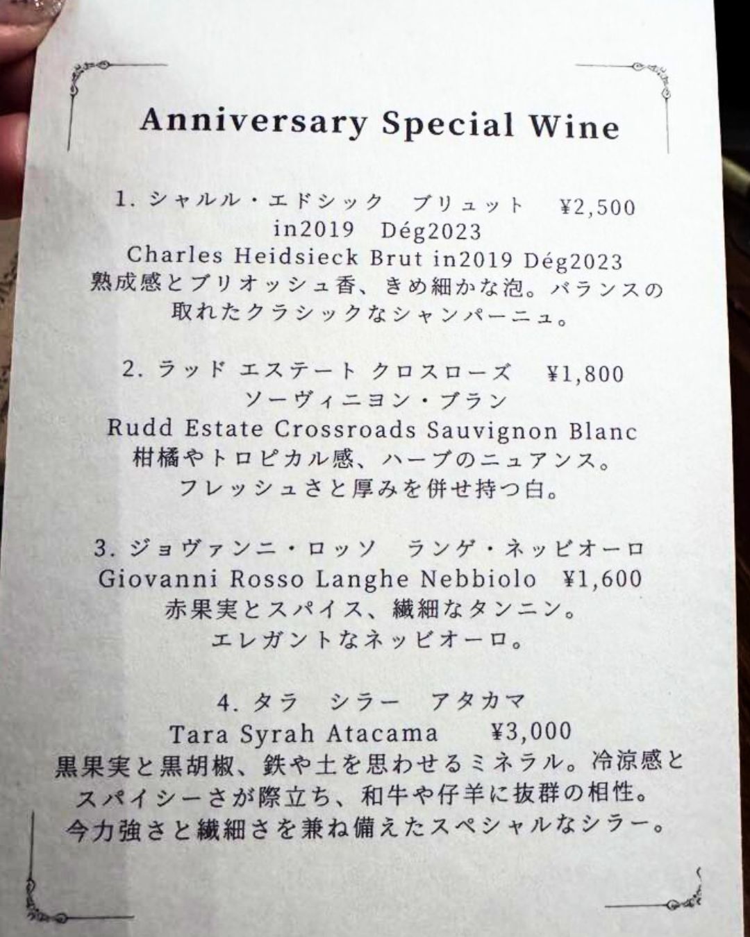 と、シェフに言わしめたワインがあるとのこと。これ友達がちゃんとインスタのポスト読み込んでいて、その場で教えてくれたんです。そこまでシェフに言わせるワインがあったんですよね、と。