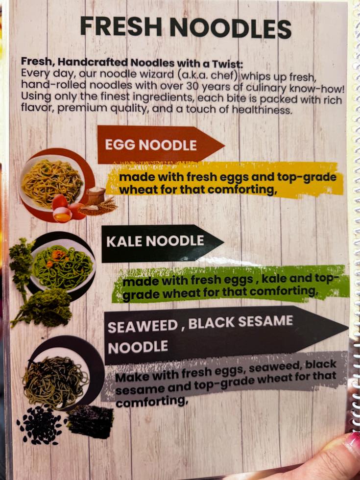 日本人へのビジュアル感は「茶そば?(・∀・)」って感じですが、これはケールが練り込まれてる麺。