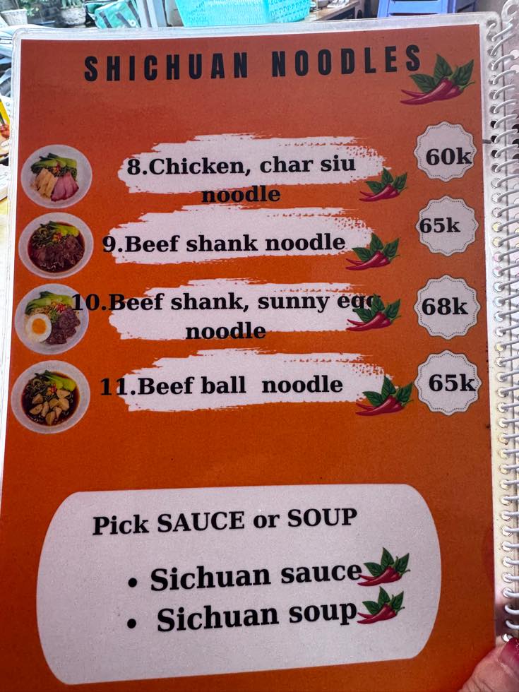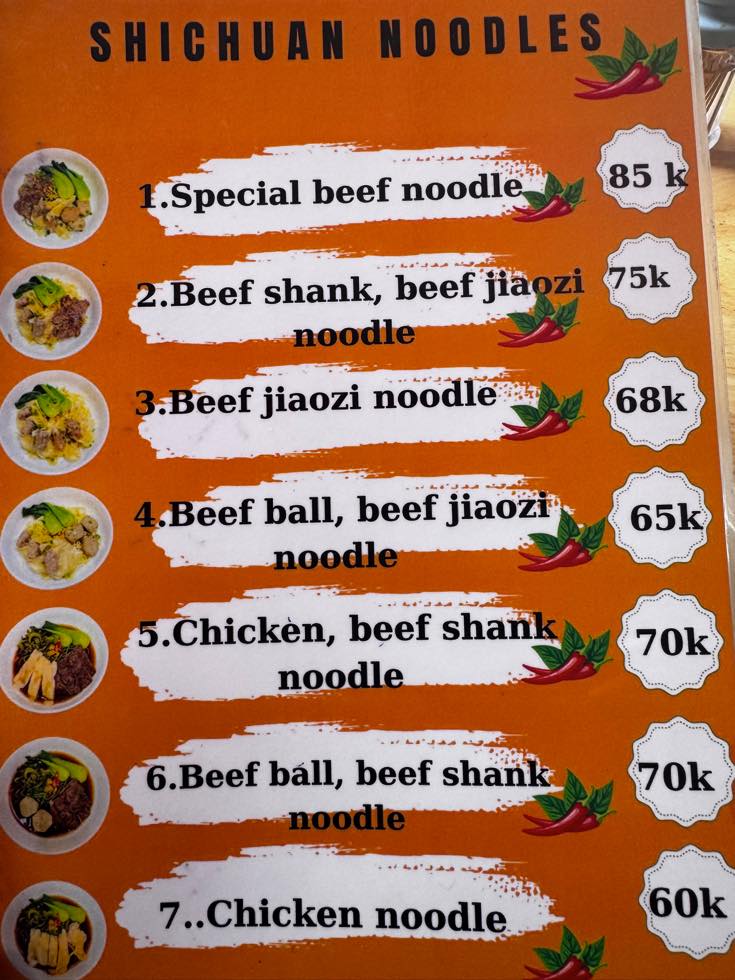SHICHUAN NOODLES ってのは、麻辣的なやつかな?と想像。結構辛そう。