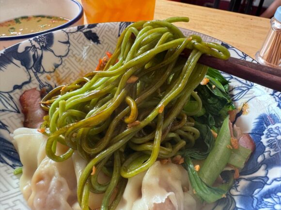 旨みあるけど重すぎなくて、主張が控えめ。だから醤油やサテと合わせて、ワンタンつけて食べると、かなり美味しい。麺の方が穏やかな味だと、アクセントにもなるし。