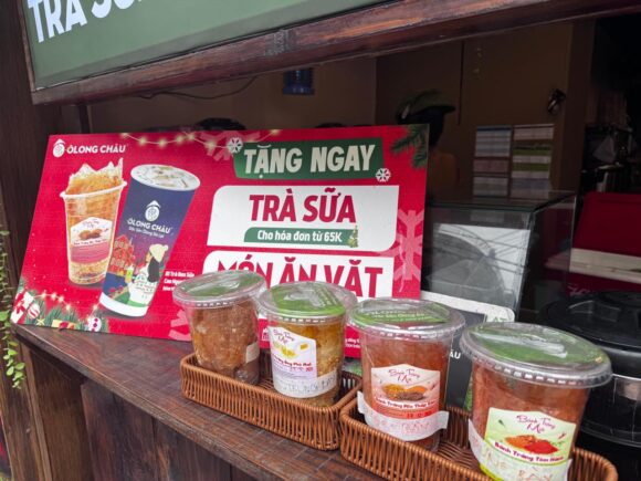 65k分以上買ったら、Banh Trang Tron(ライスペーパーに唐辛子の入った調味料をまぶしたおやつ)をプレゼント、みたいなのをやってました。