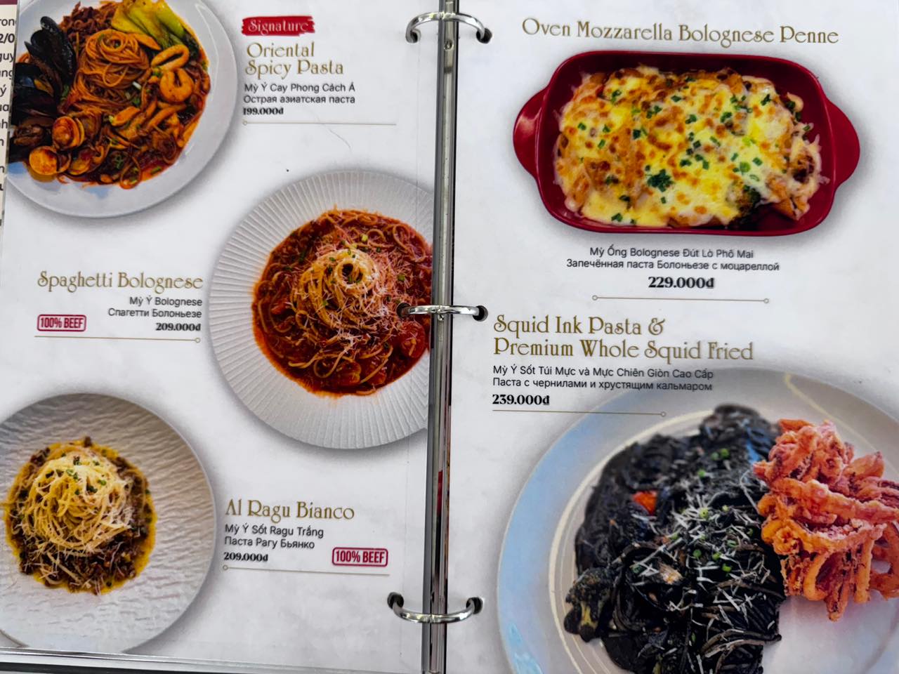 パスタもバリエーションが豊富で、こちらは200k前後が主要価格帯かな。