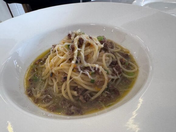 しかしパスタのしなり方から茹で方は悪くなさそう。