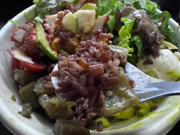 好き、というだけじゃなくてこちらはベースのチョイスに、「ライス&キヌア」があるんですよね。キヌア、手がかかるからか、あまりチョイスにないところが多い。あってもトッピングとしてしかない、とか。
