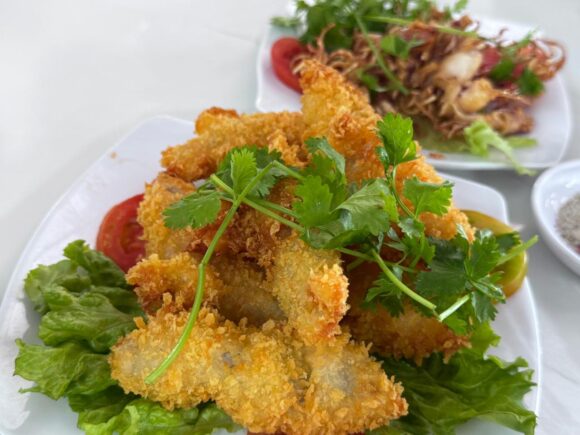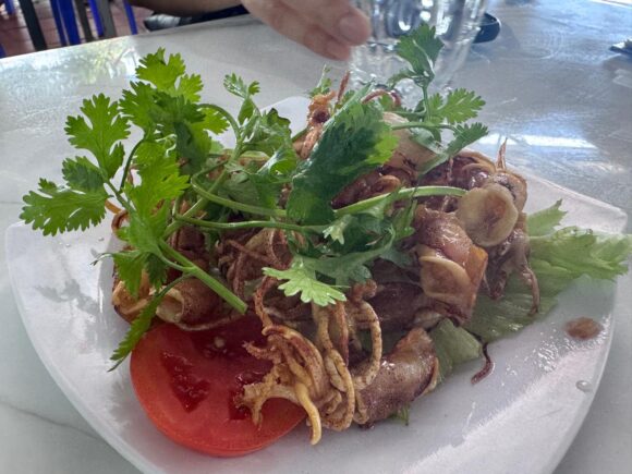 細い脚のところはカリッとなってて、ヌクマムを使った甘辛味がたまりません!これ、日本人大好きな味だとお思われる!