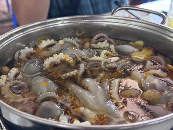 昔7区でタコ鍋食べたことがあったけど、そこのスープはもっと甘くて、ちょっと期待外れだったが、同じ系統ながらここのスープは甘さ控えめ。