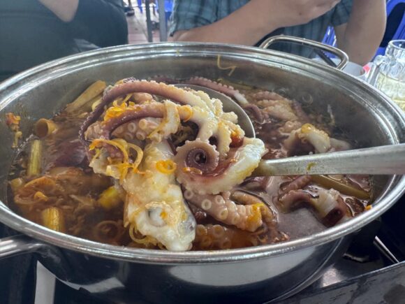 昔7区でタコ鍋食べたことがあったけど、そこのスープはもっと甘くて、ちょっと期待外れだったが、同じ系統ながらここのスープは甘さ控えめ。